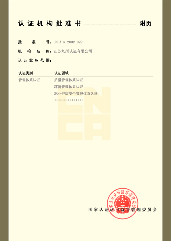 管理体系认可证书-英文