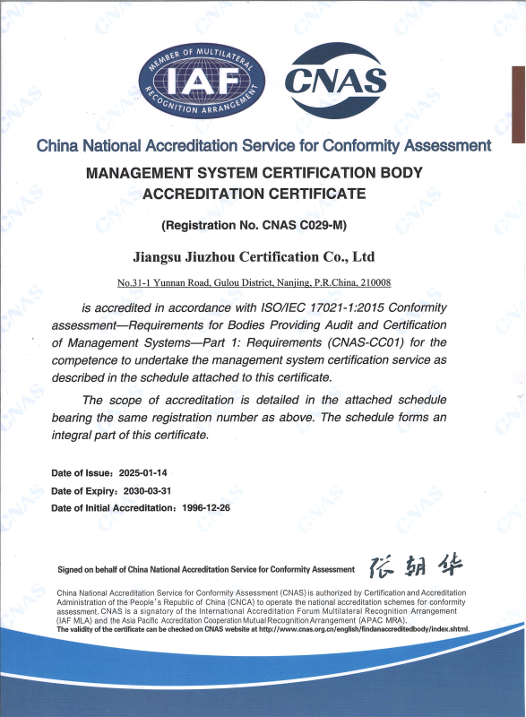 管理体系认可证书-中文