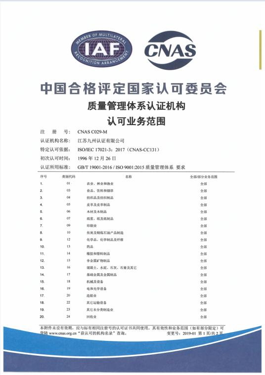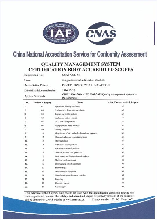 质量管理体系认可业务范围-英文1