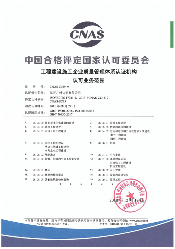 工程建设施工企业管理体系认可业务范围-中文