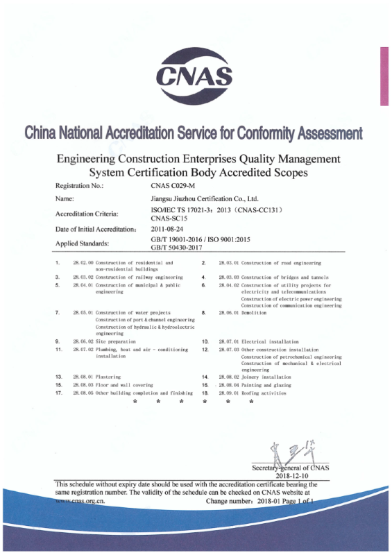 工程建设施工企业管理体系认可业务范围-英文