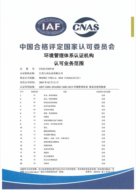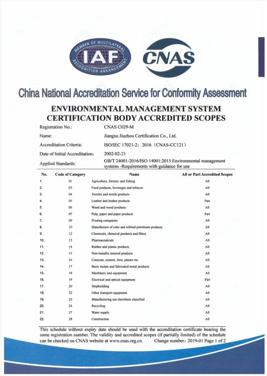 环境管理体系认可业务范围-英文1