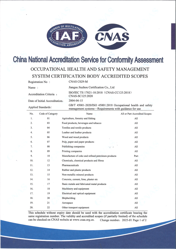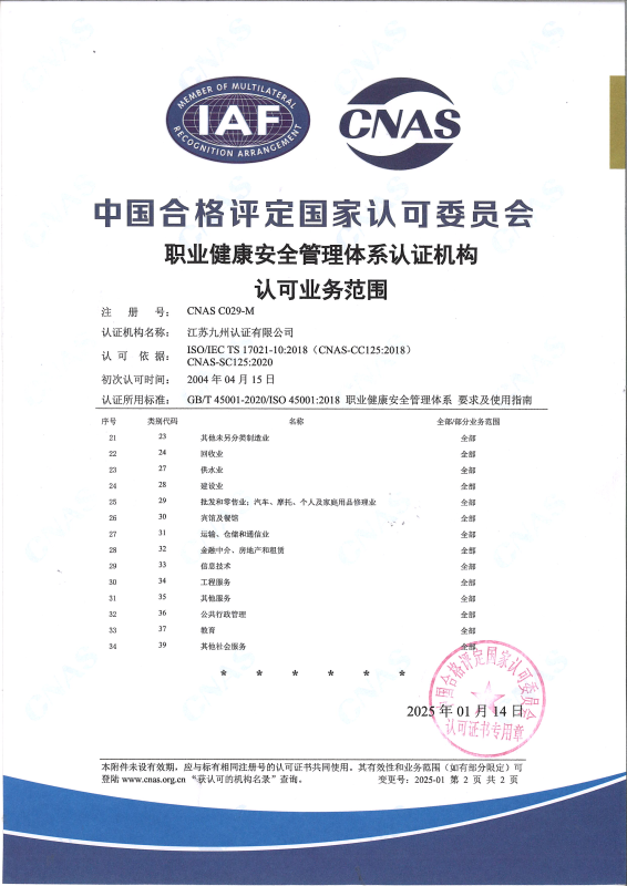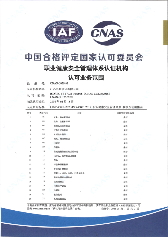 职业健康安全管理体系认可业务范围-中文2