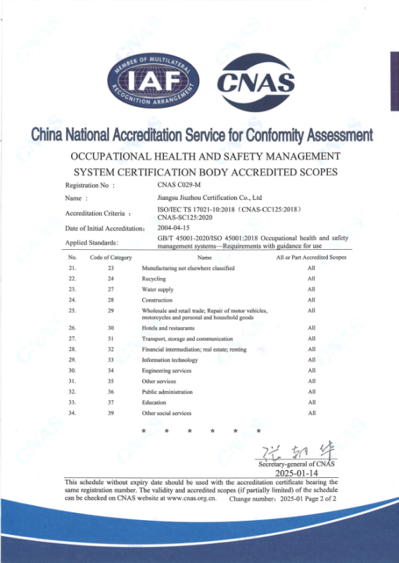 职业健康安全管理体系认可业务范围-英文2